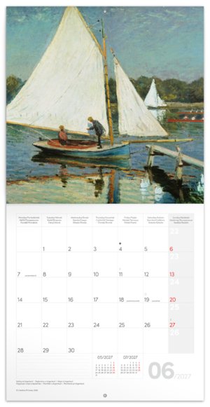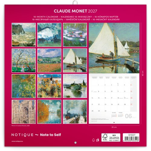 Urobte zo svojho bytu umeleckú galériu vďaka nášmu kalendáru. Poznámkový kalendár s reprodukciami najznámejších obrazov impresionistického maliara Clauda Moneta dopĺňa šesťjazyčné kalendárium s priestorom pre vaše plány a poznámky.