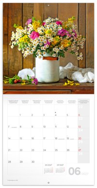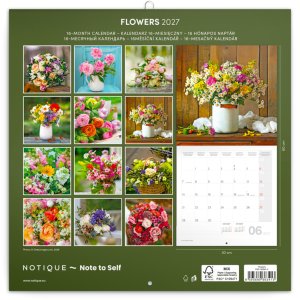 Doprajte si krásu čerstvých kvetov, ktoré nikdy neopadajú, na fotografiách v poznámkovom kalendári. V kalendári okrem fotiek nájdete prehľadné kalendárium od septembra 2026 do decembra 2027 v šiestich jazykoch, mesačné fázy, dôležité sviatky a priestor pre poznámky na každý deň.