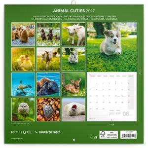 Fotografie roztomilých medvieďat, jahniat alebo tuleňov vám budú robiť radosť celý rok. V kalendári okrem fotiek nájdete prehľadné kalendárium od septembra 2026 do decembra 2027 v šiestich jazykoch, mesačné fázy, dôležité sviatky a priestor pre poznámky na každý deň.