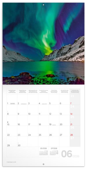 Poznámkový kalendár s dvanástimi fotografiami, na ktorých sa podarilo dokonale zachytiť tak vzácny jav, ako je polárna žiara. Vnútri nájdete prehľadné kalendárium od septembra 2024 do decembra 2025 v šiestich jazykoch, mesačné fázy, dôležité sviatky a priestor pre poznámky na každý deň.