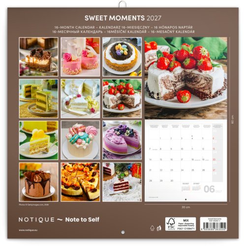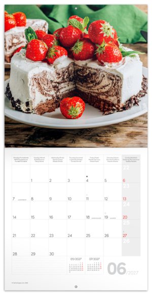 Jedinečný kalendár pre všetkých milovníkov sladkostí! Pokochajte sa pohľadom na rôzne druhy tort na stránkach tohto kalendára. Vnútri nájdete šesťjazyčné kalendárium, mesačné fázy, dôležité sviatky a priestor pre vaše poznámky a plány.