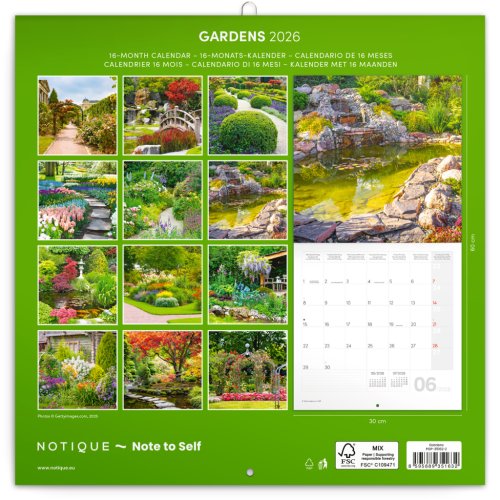NOTIQUE Poznámkový kalendár Záhrady 2026, 30 x 30 cm