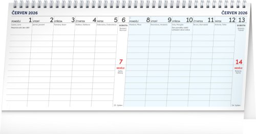 V 14-dennom stolnom kalendári je veľa priestoru na poznámky, ďalej české kalendárium, sviatky a pamätné dni aj mesačné fázy. To všetko v prehľadnom dvojtýždňovom rozvrhnutí.