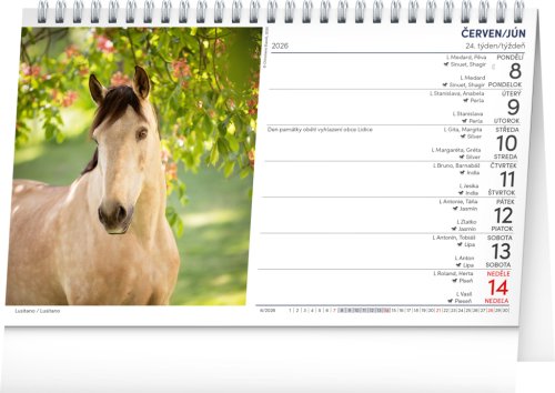Oslávte sviatok spolu so svojim konským parťákom – v tomto praktickom stolnom kalendári nájdete mená koní na každý deň. Kalendár obsahuje týždenné české i slovenské kalendárium aj so sviatkami a pamätnými dňami, mená koní a mesačné fázy. Kalendár zdobí pekné fotografie od Christiana Slawika a nechýba ani priestor na poznámky.