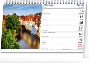 Praha a jej zákutia na fotografiách stolového kalendára pripraveného v spolupráci so značkou Milujem Prahu. Kalendár dopĺňa české týždenné kalendárium s menami, sviatkami a pamätnými dňami, fázami mesiaca a rozšíreným zoznamom mien.