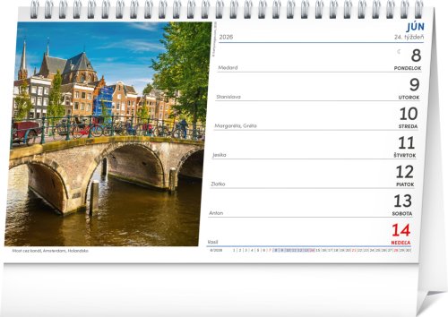 Praktický stolný kalendár s 53 fotografiami tých najkrajších a najzaujímavejších kútov celého sveta. Precestujte svet krížom krážom a pozrite sa na miesta, ktoré bežne neuvidíte. Navštívte svetové metropoly aj zapadnuté dedinky bez toho, aby ste museli míňať za dovolenku. Stolný kalendár so slovenským kalendáriom obsahuje sviatky a pamätné dni, mesačné fázy a prehľad na celý rok 2026 a 2027.