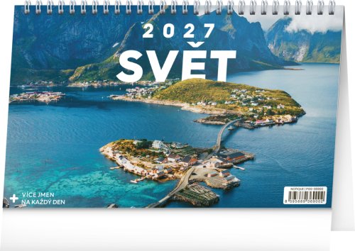 Praktický stolový kalendár s 52 fotografiami najkrajších a najzaujímavejších kútov celého sveta. Precestujte svet krížom-krážom a pozrite si miesta, ktoré bežne nevidíte. Navštívte svetové metropoly aj zapadnuté dedinky bez toho, aby ste museli míňať na dovolenku. Stolový kalendár s českým kalendáriom obsahuje sviatky a pamätné dni, mesačné fázy a prehľad na celý rok 2027 a 2028.