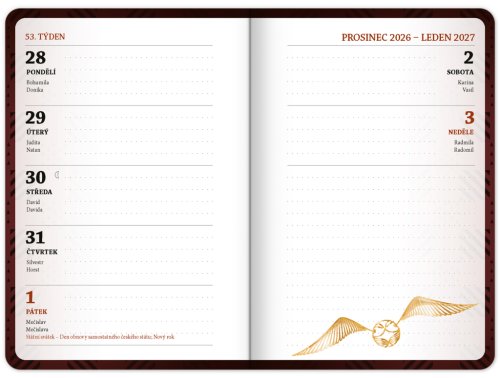 Praktický diár pre všetkých väčších školákov a študentov s motívom Harryho Pottera. Obsahuje ťaháky z matematiky, fyziky, chémie a angličtiny. Hodiť sa budú aj rozvrhy hodín a prehľad termínov prázdnin.