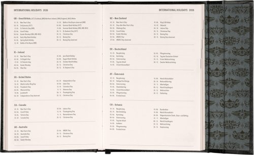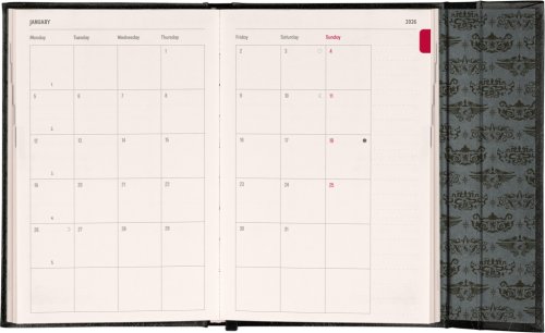Týždenný diár v anglickom jazyku s medzinárodnými sviatkami a praktickým magnetickým uzatváraním je ideálnou voľbou pre tých, ktorí chcú mať svoje plány prehľadne pod kontrolou. Ponúka horizontálne rozloženie vo verzii týždeň na dvoch stranách s priestorom na poznámky. Súčasťou sú praktické mesačné prehľady, ideálne na plánovanie dovoleniek či prázdnin.