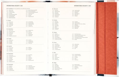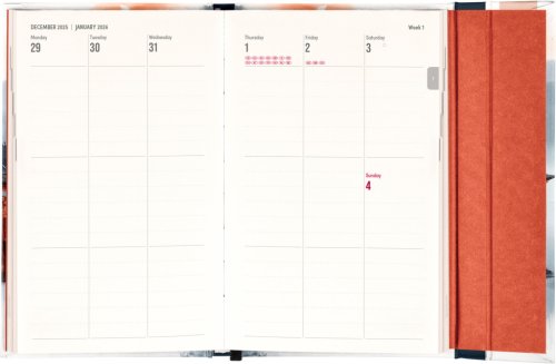 Týždenný diár v anglickom jazyku s medzinárodnými sviatkami a praktickým magnetickým uzatváraním je ideálnou voľbou pre tých, ktorí chcú mať svoje plány prehľadne pod kontrolou. Ponúka stĺpcové rozvrhnutie jednotlivých týždňov s dostatkom priestoru na každodenné poznámky. Súčasťou sú praktické mesačné prehľady, ideálne na plánovanie dovoleniek či prázdnin.