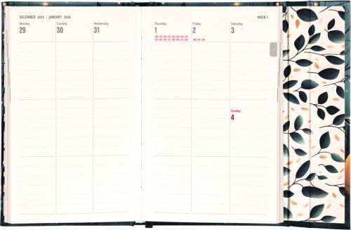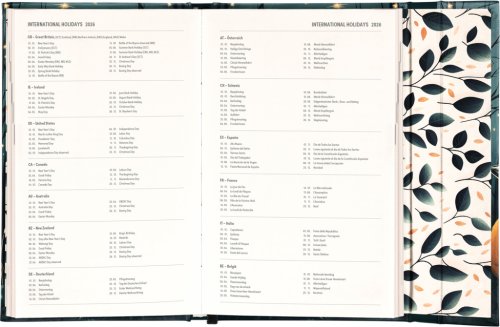 Týždenný diár v anglickom jazyku s medzinárodnými sviatkami a praktickým magnetickým uzatváraním je ideálnou voľbou pre tých, ktorí chcú mať svoje plány prehľadne pod kontrolou. Ponúka stĺpcové rozvrhnutie jednotlivých týždňov s dostatkom priestoru na každodenné poznámky. Súčasťou sú praktické mesačné prehľady, ideálne na plánovanie dovoleniek či prázdnin.