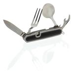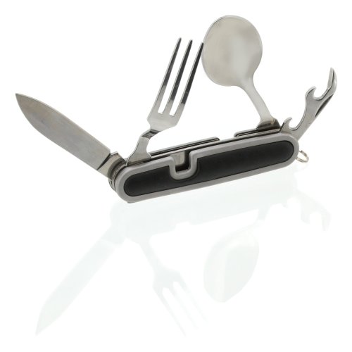 Vreckový nôž Cattara Camping využijete pri stanovaní, na túrach, výletoch do prírody aj doma na záhrade. Nožík sa skladá z celkom 5 nástrojov - vidlička, otvárač na plechovky a viečka fliaš, lyžice a čepeľ noža . Rozdeľuje sa na 2 časti povytiahnutím jednej časti vpred. Nájdete na ňom aj krúžok na pripevnenie na kľúčenku . Keďže má skladací nôž malé rozmery, zmestí sa vám do vrecka.
