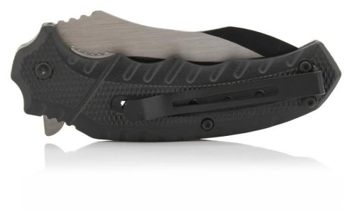 Pomocný výstupok čepele a ergonomické tvarovanie rúčky umožní ľahké a bleskurýchle otváranie noža jednou rukou . Nôž je vybavený bezpečnostnou poistkou , ktorá sa ovláda bočným posuvom palca v spodnej časti rukoväte, takže nehrozí samovoľné otvorenie. Poistka Liner Lock bráni nechcenému zatvoreniu čepele pri práci. Rukoväť s atraktívnou perforáciou oboch črienok je na zadnej strane vybavená klipsom na prichytenie za okraj vrecka či opasok .
