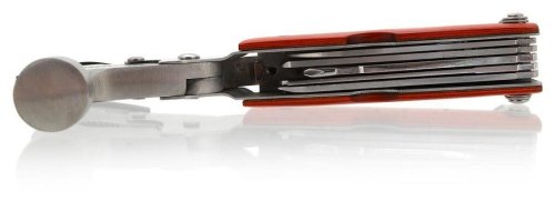 Využite všetko náradie a pomôcky , ktoré nôž poskytuje. Nájdete v ňom kladivo, sekerku, kombinované kliešte, nôž dĺžky 7 cm, krížový skrutkovač s bežnými rozmermi, pílku na drevo, odstraňovač šupín, pilník so zakončením, plochý skrutkovač, otvárač a kombinovaný imbusový nástavec.