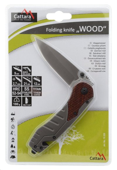Skladací 21cm vreckový nôž Cattara Wood je nevyhnutnou súčasťou výbavy pre camping, rybárčenie a väčšinu outdoorových aktivít. Čepeľ noža je zhotovená z nožiarskej ocele 420J2 , dĺžky 9 cm o sile 2,7 mm. Táto zliatina chrómu, niklu, mangánu, kremíka, fosforu, uhlíka, síry a železa dosahuje vynikajúcu tvrdosť HRC52-54 a je obzvlášť vhodná do nepriaznivého prostredia, kde exceluje svojou odolnosťou voči korózii a vonkajším vplyvom .
