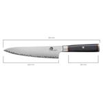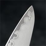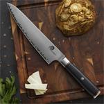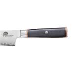 Kúpte si naozaj kvalitný nôž v japonskom štýle . Jeho jadro tvorí 2 vrstvy nerezovej ocele rozdielnych tvrdostí . Vďaka týmto vrstvám je nôž mimoriadne odolný. Čepeľ v matnom odtieni (takzvaný stonewashed) zdobí úchvatné brúsenie. Táto úprava skryje škrabance. Keďže je nôž mimoriadne ostrý, zachovajú si krájané potraviny svoj tvar a štruktúru.