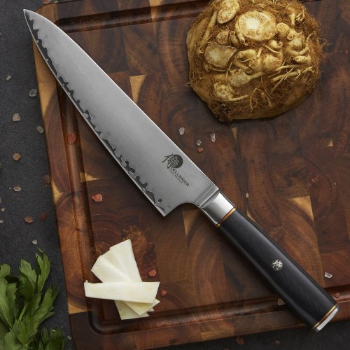 Kuchársky nôž Okami Chef od značky Dellinger sa stane nepostrádateľným pomocníkom každého kuchára. Využijete ho na krájanie všetkých potravín – ovocie, zelenina, mäso i ryby. Chrbát a ostrie noža sa zužujú do špičky , takže sa perfektne hodí na porciovanie a krájanie mäsa a rýb, plátkovanie a čistenie ovocia a zeleniny. Dokonca s ním spracujete bylinky a orechy.
