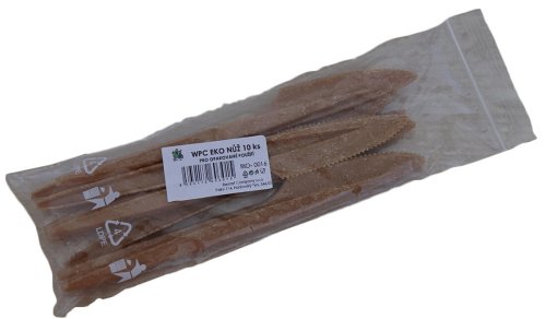 Ekologické kompozitné príbory vyrobené z WPC materiálu (drevo/plast) sú vhodné na jednorazové aj opakované použitie. WPC materiál je veľmi odolný voči vysokým teplotám (do 100 ° C). Príbory je možné opakovane umývať v umývačkách. Inovatívne veľmi odolný a pevný nôž je vyrobený z WPC materiálu, ktorý kombinuje najlepšie vlastnosti dreva a plastových polymérov. Nôž je opakovane použiteľný, 100% recyklovateľný, odolný vysokým teplotám, vode aj mastnote.
