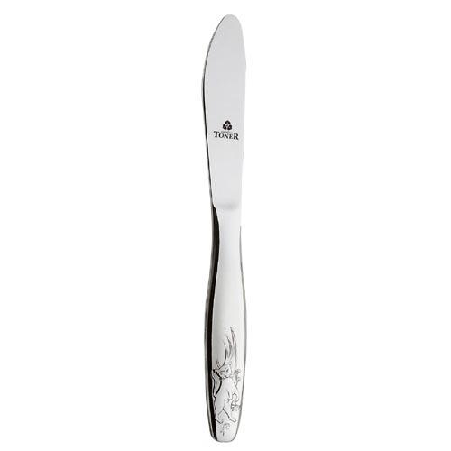 Detský jedálenský nôž vyrobený z kvalitnej nereze 18/10, dĺžka 16 cm, hrúbka materiálu 3 mm. Mechanicky leštené do vysokého lesku. Vhodný do umývačky riadu. Český výrobca. EAN 8590159107542