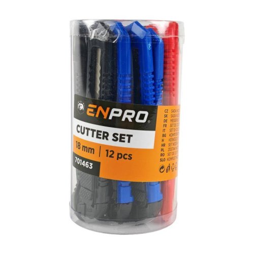 Nôž odlamovací s posuvným tlačidlom, SET dóza 12 ks, 18 mm, ENPRO