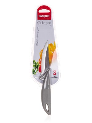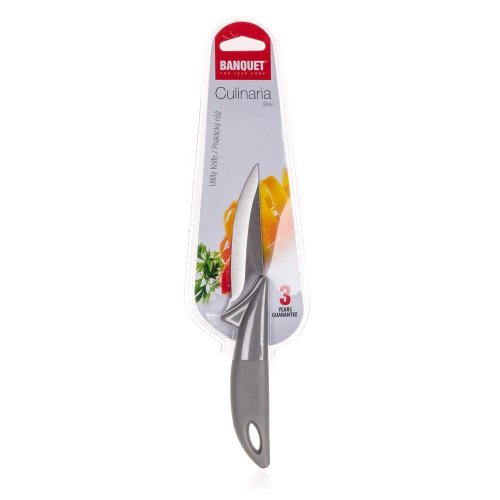Praktický nôž CULINARIA Grey s oceľovým ostrím a plastovou rukoväťou. Oceľové nože patria medzi nenahraditeľných pomocníkov v každej kuchyni. Výber vhodného noža nám uľahčí krájanie či porciovanie potravín. Kolekcia nožov BANQUET ponúka široký výber nožov mnohých tvarov, veľkostí a účelu použitia.