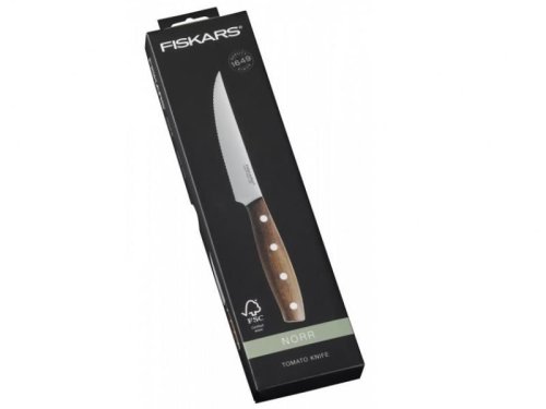Univerzálny raňajkový nôž je vhodný na krájanie potravín strednej veľkosti. Tento prémiový nôž má kvalitné ostrie z nemeckej ocele s optimálnou tvrdosťou 54 HRC. Pohodlná drevená rukoväť je vyrobená z nórskeho javora - má vysokú odolnosť a minimálnu nasiakavosť. Je možné ho umývať v umývačke, na zachovanie trvanlivosti je však vhodnejšie ručné umývanie. Dĺžka čepele: 12 cm.