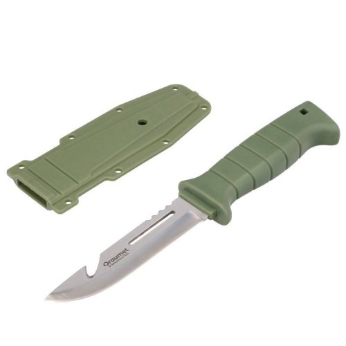 moderný poľovnícky - outdoorový nôž s puzdrom dĺžka 210 mm nôž je vyrobený z jedného kusu nerezovej ocele čepeľ s teflónovým povrchom dĺžka 100 mm nylonová ergonomicky tvarovaná rukoväť s pohodlným úchopom.