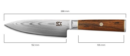 Kuchársky nôž z radu Cocobolo White Damascus od značky SOK sa stane nepostrádateľným pomocníkom každého kuchára. Poteší vás svojim všestranným využitím. Chrbát a ostrie noža sa zužujú do špičky , takže sa perfektne hodí na porciovanie a krájanie mäsa a rýb, plátkovanie a čistenie ovocia a zeleniny. Tiež ho využijete na spracovanie byliniek a orechov.