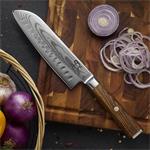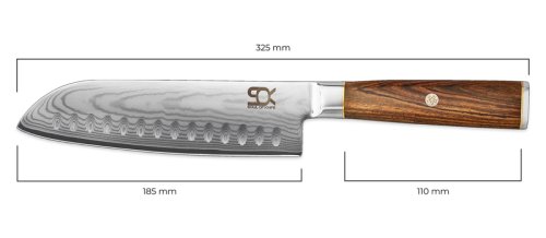 Kuchársky nôž Santoku z radu Cocobolo White Damascus od značky SOK sa stane nepostrádateľným pomocníkom každého kuchára. Využijete ho na bežné krájanie všetkých potravín – ovocie, zelenina a mäso. Čepeľ noža Santoku je širšia ako u klasických kuchynských nožov a má guľatejšiu špičku . Uľahčí vám rezanie, rozkrájanie i mletie surovín, ktoré potrebujete na varenie či prípravu pokrmov.