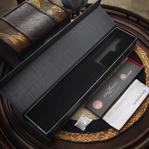 Kúpte si naozaj kvalitný nôž v japonskom štýle . Jeho rezné jadro tvorí oceľ VG10. Vďaka nej je nôž mimoriadne odolný. Vrstvy ocele tvoria na čepeli jedinečný ozdobný vzor – od jednoduchých línií až po zložitú mozaiku.