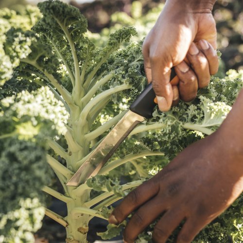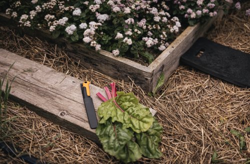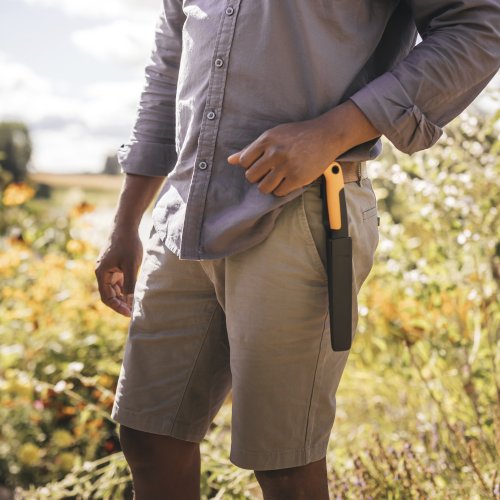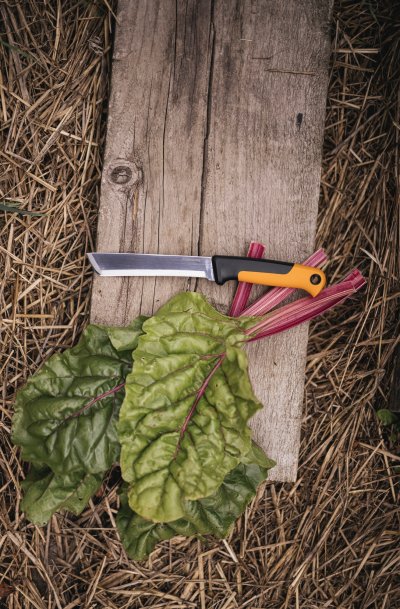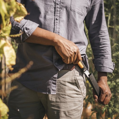 Nôž na zber je ideálny pre zber hrubých stoniek a stoniek. Presne brúsená čepeľ z nerezovej ocele má plochý hrot na rýchle rezy tlačením a zúbkovanú časť na rezanie vlákien vláknitými rastlinám. Predĺžený strmeň pre odolnosť a ergonomická rukoväť pre pohodlie a ovládanie. Obsahuje puzdro z tvrdého plastu s pútkom na opasok.