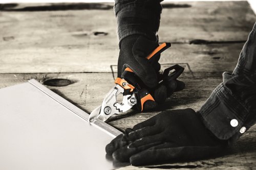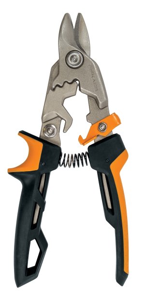Prevodové nožnice na plech s krátkou čepeľou na zvýšenie kapacity strihu. Sú ideálne na strihanie rôznych odolných materiálov, vrátane plechu, potrubia, sadrokartónových rohov, kovových svorníkov, líšt, podhľadov, rímsových dosiek, odkvapových líšt, odkvapov a ďalších materiálov. Majú čepele s patentovanou technológiou PowerGear - prevodový systém, ktorý poskytne o 40% viac sily, najmä v najťažšej časti strihu. Offsetové čepele umožňujú strihanie stredom plátu, zatiaľ čo ruka je bezpečná mimo ostrý kov. Strižná kapacita: oceľ valcovaná za studena až do hrúbky 1,518 mm alebo nerezovú oceľ až do hrúbky 0,911 mm. Dĺžka strihu: 2,54 cm. Výška: 25 mm, dĺžka: 293 mm, šírka: 102 mm, hmotnosť: 400 g. Záruka: 5 rokov.