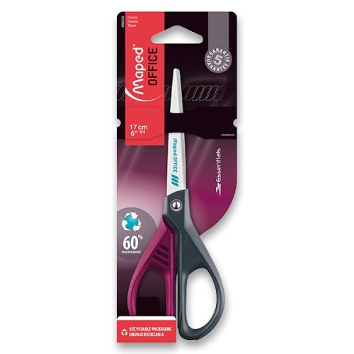 Nožnice Maped Essentials Metal Colours veľkosti 17 cm majú rukoväť z 60% post-industriálneho recyklovaného plastu.