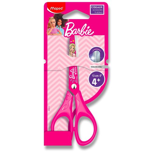 Detské nožnice Maped Pulse Barbie veľkosť 13 cm špeciálne navrhnuté pre deti už od 4 rokov. Atraktívny dizajn s motívom obľúbenej bábiky Barbie. Zaoblené špičky, dekorované čepele z brúsenej nerezovej ocele. 3D ergonomická rukoväť prispôsobená detským rúčkam.