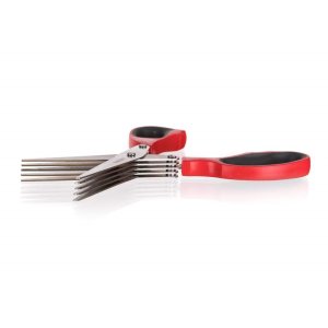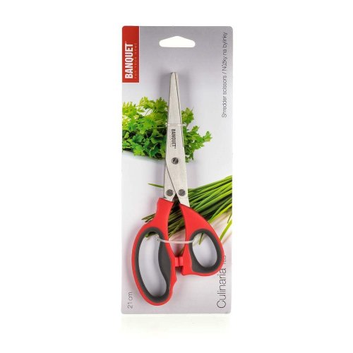 Nožnice na bylinky CULINARIA sú určené na strihanie byliniek do nádoby alebo na čerstvo natreté pečivo. Ergonomické rukoväte sú vyrobené z plastu v červenej farbe.