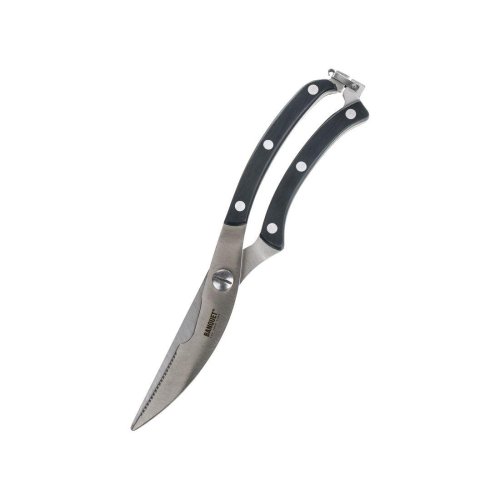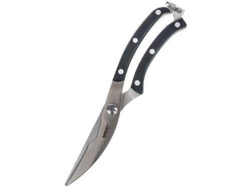 Dĺžka nožníc celkom 25.5 cm, dĺžka čepelí 8/5.5 cm. Nože sú vyrobené z nerezovej ocele, nitované rukoväte. Nepostrádateľný pomocník pri porciovaní kurčiat a iné hydiny. Vďaka plastovej rukoväti, ktorá padne krásne do ruky, je ľahká manipulácia. Nie je vhodné do umývačky riadu. EAN 8591022396810