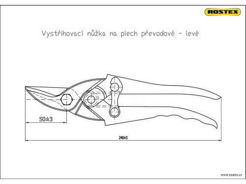 dĺžka: 225 mm pre plech o sile max 1,3 mm ľavé