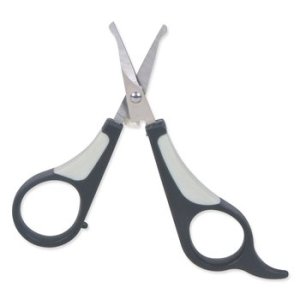 Nožnice pre psy, mačky a malé zvieratá. Sú vyrobené z nerezovej ocele. Majú zaguľatené špičky na ochranu pred úrazmi. Nožnice majú plastovú rukoväť s protišmykovou gumou. Vhodné na úpravu hlavy a labiek.