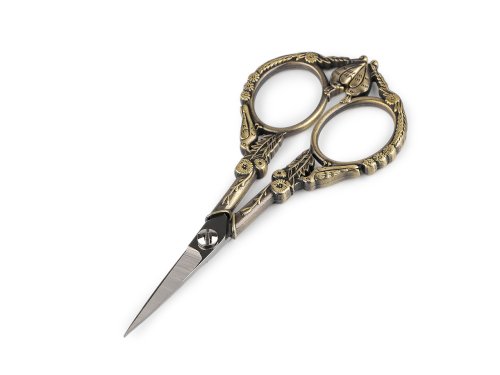 Celokovové nožnice na prvý pohľad upútajú pozornosť zdobenú vintage rukoväťou. Vďaka svojej malej veľkosti sú vhodné na starostlivé strihanie drobných vecí a detailov. Využijete ich pri vyšívaní, strihaní či vystrihovaní papiera a pod.