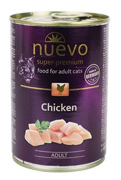 Konzervou Nuevo mačka adult Kurča potešíte každú vyberavú mačičku a dopraje jej tak nezabudnuteľný gurmánsky zážitok. Konzerva je bohatá na vysoký podiel kvalitného mäsa (71%) s veľkým množstvom cenných bielkovín je odpoveďou na individuálne potreby citlivej mačky stráviteľná a obzvlášť chutná strava.