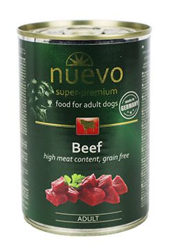 Konzerva Nuevo Hovädzie je vhodná pre dospelých psov všetkých plemien, s obsahom hovädzieho mäsa. Vysoký podiel mäsa (73%) obsahuje veľké množstvo cenných bielkovín. Esenciálne látky, vitamíny, minerály a ďalšie výživné látky vytvárajú dokonale vyváženú, komplexnú stravu, ktorú si aj ten najmaškrtnejší a najvyberavejší jedák okamžite zamiluje. Krmivo je výborným zdrojom energie, výborne stráviteľné a obzvlášť chutné.
