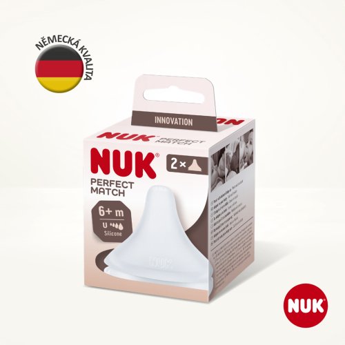 Cumlík NUK Perfect Match, vyrobený z mäkkého silikónu, neobsahuje BPA, veľkosť U (univerzálna), od 6 mesiacov, 2 kusy