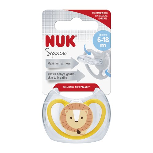 Naši najmladší majú od začiatku vlastnú hlavu, ale aj úplne odlišné fyzické vlastnosti. Detská pokožka je veľmi jemná a citlivá. NUK vynašiel nový cumlík NUK Space, aby chránil detskú pokožku tým najlepším možným spôsobom a poskytol vašim potomkom maximálne pohodlie za každej situácie. Cumlík zaujme svojím splošteným a úzkym cumlíkom, ktorý poskytuje dostatočný priestor pre prirodzené sacie pohyby. Cumlík NUK Space vyhovuje perfektne detskej pusinke počas sania. Viac ako 95% bábätiek cumlík NUK bez problémov prijme. Cumlík NUK Space má tiež extra veľké otvory na ventiláciu, ktoré sa starajú o maximálnu cirkuláciu vzduchu a umožňujú detskej jemnej pokožke dýchať. Z tohto dôvodu by 99% mamičiek odporučilo cumlík NUK Space pre bábätká s citlivou pokožkou. Model NUK je dostupný v rôznych designoch. Roztomilý 3D zvieracie motívy v krabičke, ktorá šetrí miesto a dá sa použiť aj na cestovanie. Pribaľte cumlík NUK Space do svojej kabelky alebo tašky na plienky a majte ho po ruke zakaždým, keď bude treba. Cestovná krabička je vhodná aj na sterilizáciu v mikrovlnnej rúre. Vďaka tomu vám bude cumlík NUK Space pomocníkom na dlhú dobu. Nezávislý prieskum trhu so 114 mamičkami, Nemecko 2018.