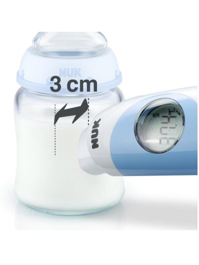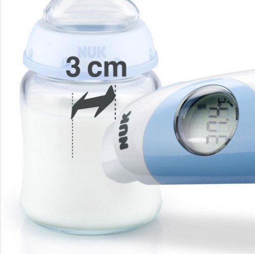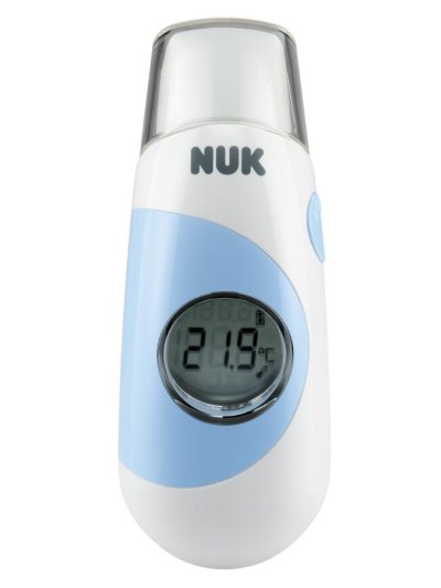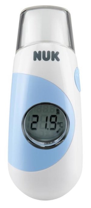 NUK Baby Flash obsahuje infračervený senzor. Meranie prebieha pomocou tohto čidla bez dotyku, držaním meracej špičky v max. 3 cm odstupe od čela. Nameraná hodnota teploty sa zobrazí počas sekundy na digitálny display. LCD display zobrazuje výsledok merania v C° a F°. V prípade zvýšenej teploty zaznie akustické varovanie. Pomocou nemého módu je možné všetky signálne zvuky prístroja vypnúť.