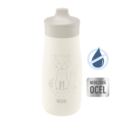 Fľaša NUK Mini-Me Sip z nerezovej ocele – moderná detská fľaša na pitie. Fľaša s náustkom odolným proti hryzeniu, netečúca, od 9 mesiacov, neobsahuje BPA, 1 kus
