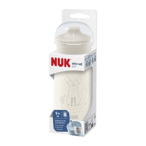 Je príjemné, keď sa detská fľaštička na pitie páči nielen deťom, ale aj rodičom. Nová fľaša NUK Mini-Me Sip je vhodná pre deti od 9 mesiacov. Vhodná pre deti – moderným a minimalistickým spôsobom. Praktická a zároveň štýlová. Nerozbitný plast je vyrobený z viac ako 90% z prírodných surovín. Inovatívne náustok hravo odolá detským zúbkom. Jasný záväzok k udržateľnosti a kvalite.