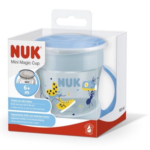 Naučiť piť Vaše dieťa samostatne je vo vašich rukách. Hrnček NUK Mini Magic Cup umožňuje aj tým najmenším piť ako veľké deti. 360 ° pitný okraj podporuje dieťa v snahe učiť sa piť pozdĺž celého okraja - skoro ako u bežného hrnčeka. Jediný „kúzelný rozdiel“ je ten, že nápoj z hrnčeka nevytečie vďaka silikónovému disku, ktorý utesňuje viečko zvnútra. Pitie je detská hra - stačí jednoducho sať hranu hrnčeka. Hrnček je navyše mimoriadne malý a ľahko sa drží. Vďaka ergonomicky tvarovaným držiatkam ho ľahko môžu držať aj malé prstíky a rúčky. Aby ste hrnček Mini Magic Cup udržali čistý av bezpečí, nech už ste kdekoľvek, súčasťou je ochranné viečko. Hrnček NUK Mini Magic Cup - pitie ako u veľkých detí, prispôsobené pre tých najmenších. Hrnček je vyrobený z vysoko kvalitného a odolného materiálu, neobsahuje BPA a je vyzdobený roztomilými motívmi. Skladá sa z niekoľkých jednotlivých dielov, ktoré je možné behom chvíľky rozložiť a zložiť a jednoducho sa čistia. Hrnčeky NUK Evolution Cups - správny hrnček pre každé vývojové štádium . Naučiť sa samostatne piť je jedným z najdôležitejších krokov vo vývoji bábätka a je skutočnou výzvou, pokiaľ ide o trpezlivosť a zručnosť. Práve preto sme vyvinuli hrnčeky Evolution Cups - hrnčeky v dvoch veľkostiach as rôznymi nástavcami na pitie, ktoré „rastú“ spoločne s dieťaťom. Vďaka širokej škále možných kombinácií ponúka tento rad hrnčekov ten pravý hrnček pre každú učiacu fázu. Každý nadstavec je navrhnutý tak, aby vyhovoval jednotlivým učiacim fázam a bolo ľahké ho so zvyšujúcimi sa schopnosťami bábätka vymeniť. Všetky tri nástavce sú tiež úplne bezpečné proti vytečeniu. Vďaka tomu majú deti vždy takú pomoc, akú práve potrebujú, a zároveň ich učenie sa piť baví. Hlavné vlastnosti: 360 ° pitný okraj, vďaka ktorému možno piť zo všetkých strán s ergonomicky tvarovanými držadlami pre ľahké držanie spojme 160 ml tekutiny odolné proti vytečeniu s ochranným viečkom na cestovanie neobsahuje BPA