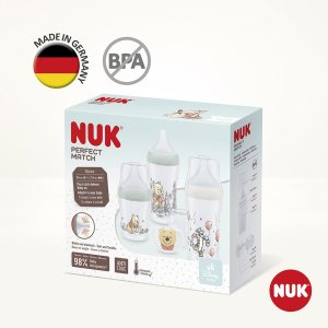 NUK Perfect Match Disney Winnie the Pooh Set. Fľaša, ktorá je jednoducho tá pravá. Pretože sa dokáže prispôsobiť. Nový cumlík NUK Perfect Match je totiž neuveriteľne mäkký a poddajný, takže sa jemne pritisne k perám a poschodiu bábätka. Tvar cumlíka bábätku umožňuje ľahké prisatie spôsobom, ktorý odporúčajú pôrodníci a pediatri.