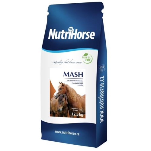NutriHorse Mash je chutné krmivo s priaznivým dietetickým účinkom. Pšeničné otruby podporujú zdravú funkciu čriev a trávenia. Vysoký podiel ľanového semena zase pomáha zaistiť peknú a lesklú srsť. Mash je určený prevažne pre kone, ktorí sa zotavujú po chorobe alebo operácii. Ďalej je vhodný pre športové kone, pri ktorých urýchľuje regeneráciu po náročnom tréningu. Pozitívne účinky má u koní v čase pĺznutia alebo v zimnom období.