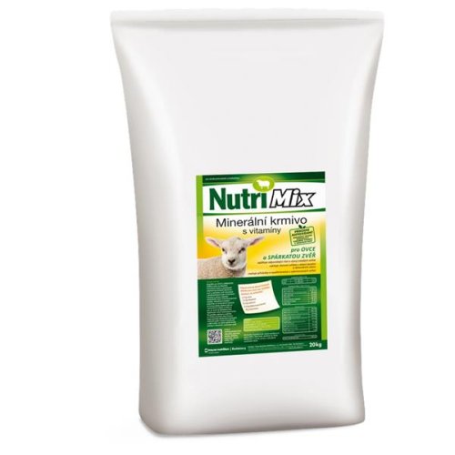 PROBLÉM Nedostatočná alebo nevyvážená kŕmna dávka pre ovce alebo škárnatú zver v odchove alebo vo výkrme má za následok znížené prírastky, nižšiu využiteľnosť krmiva, menšiu životaschopnosť a horší zdravotný stav. RIEŠENIE Nutrimix pre ovce a špárkatá zver je určený na doplnenie minerálnych látok a potrebných vitamínov do kŕmnych dávok zvierat chovaných v drobnochovoch alebo odboroch. Prispieva k udržaniu dobrého zdravotného stavu a životaschopnosti mláďat. Je určený na každodenné doplňovanie menej hodnotných krmív. ZLOŽENIE v 1 kg: vápnik 155 g, fosfor 65 g, sodík 55 g, horčík 25 g, vitamín A 427 500 IU , vitamín D3 55 000 IU, vitamín E 300 mg, železo 690 mg, zinok 2 toho organická väzba 570 mg), mangán 1 140 mg (z toho organická väzba 230 mg), jód 60 mg, kobalt 20 mg, selén 15 mg (z toho organická väzba 4 mg), prírodný antioxidant 300 mg, esenciálne oleje 3100 mg. SPÔSOB APLIKÁCIE Odmerané množstvo prípravku sa rovnomerne zamieša do kŕmnej dávky (jadra) alebo sa rovnomerne nasype do žľabu na krmu. Na začiatku odchovu a výkrmu je vhodné používať dolnú hranicu odporúčaného dávkovania a postupne zvyšovať podľa rastúcej hmotnosti a veku zvierat. je nutné zaistiť trvalý prístup k zdravotne nezávadnej vode. DÁVKOVANIE Jahňatá: 5 - 10 g/ 1 kus/ deň (1 vrchovatá čajová lyžička) Dospelé zvieratá: 10 - 20 g/ 1 kus/ deň (2 - 3 vrchovaté čajové lyžičky) Gravidné a laktujúce samice: 15 - 30 g/ 1 / deň (2,5 - 4 vrchovaté čajové lyžičky) (1 plná čajová lyžica - cca 10 g) Odporúčaná kŕmna dávka pre ovcu (2 jahňatá) na začiatku laktácie: 1,5 kg sena; 1,3 kg okopanín (zemiaky, kŕmna repa); 0,3 kg obilnín (ovsený šrot, pšeničné otruby, jačmeň, ai); 0,4 kg bielkovinových krmív (hrach, sójový alebo repkový šrot); 30 g Nutrimixu.